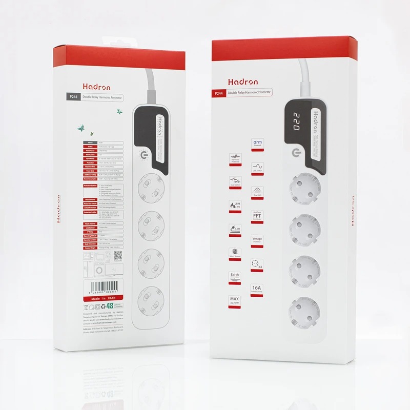 محافظ ولتاژ هارمونیک هادرون مدل P244 یک سطح بالاتر از محافظهای برق معمولی است. این محصول فقط نوسان ولتاژ را کنترل نمیکند؛ بلکه علاوه بر آن، هارمونیکهای مخرب برق (THD) را نیز پایش کرده و در صورت وجود اعوجاج شدید، از وسایل برقی شما محافظت میکند. به همین دلیل، P244 گزینهای ایدهآل برای حفاظت از لوازم حساس و گران قیمت خانگی و اداری است.